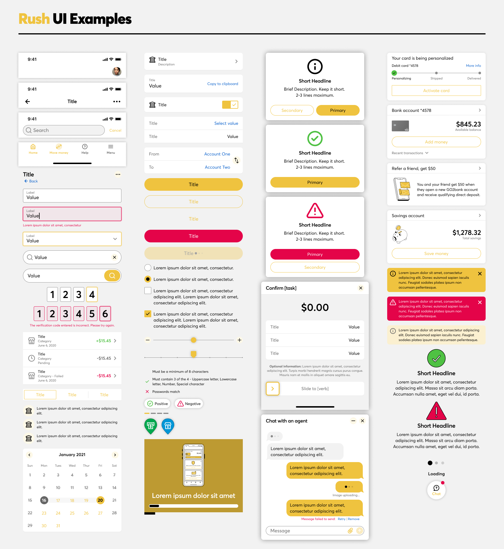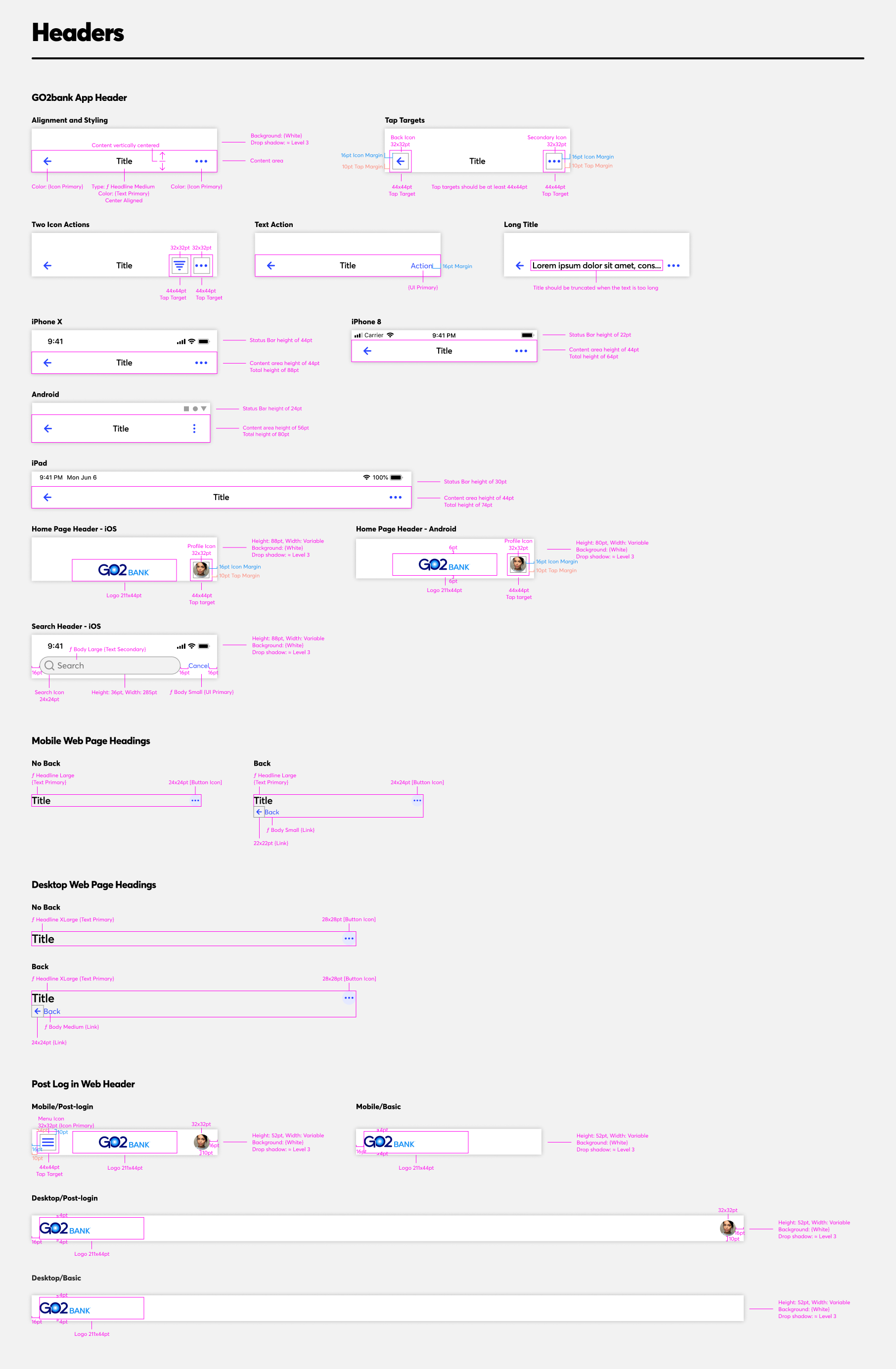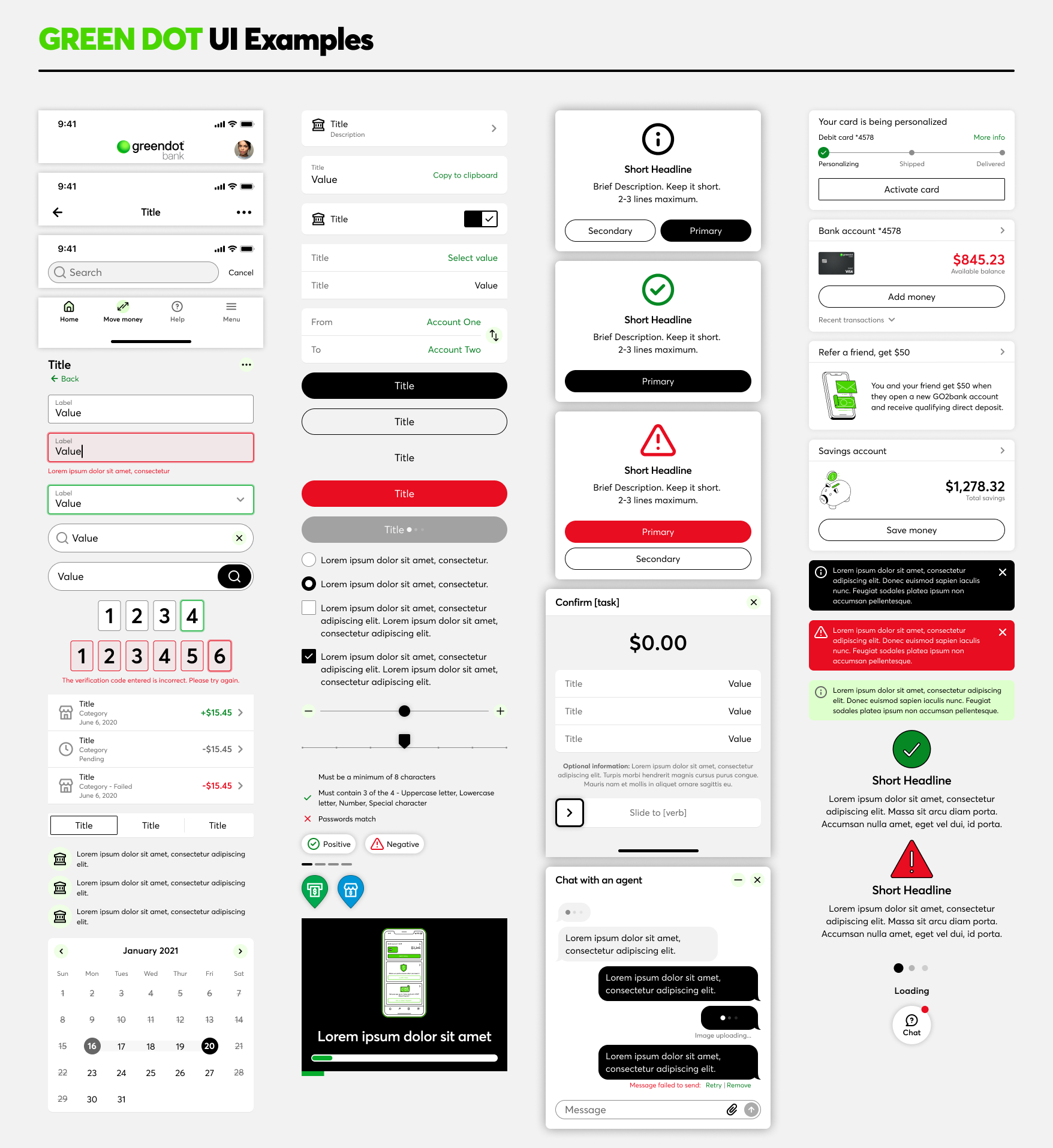 At Green Dot, we had several incomplete design systems started for different projects. When the GO2bank project was started, it was clear that a new design system was needed to serve as the basis for this project across iOS, Android and the web. It was an oportunity to create a best in class design system using the latest, tools, techniques and accessibilty. This design system would be the basis for all UX design moving forward, enabling us to quickly and efficiently create the thousands of screens nessesary to launch and maintain GO2bank and many other brand apps.