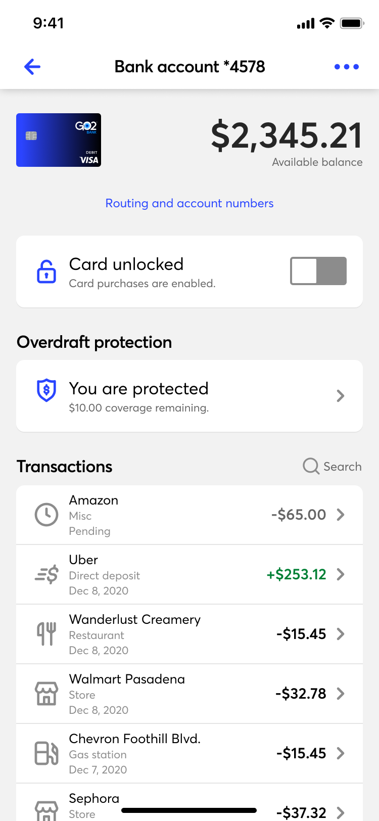 Several new features were scheduled to be included in the new product as well, such as the GO2bank Secured Credit Card, Savings account and overdraft protection. We made our deadlines, but many things were left on the cutting room floor, waiting to be prioritized by leadership. The resulting iOS and Android apps have app store ratings of 4.7 and 4.5 stars respectively and serve as the basis for all white label apps provided to partners.