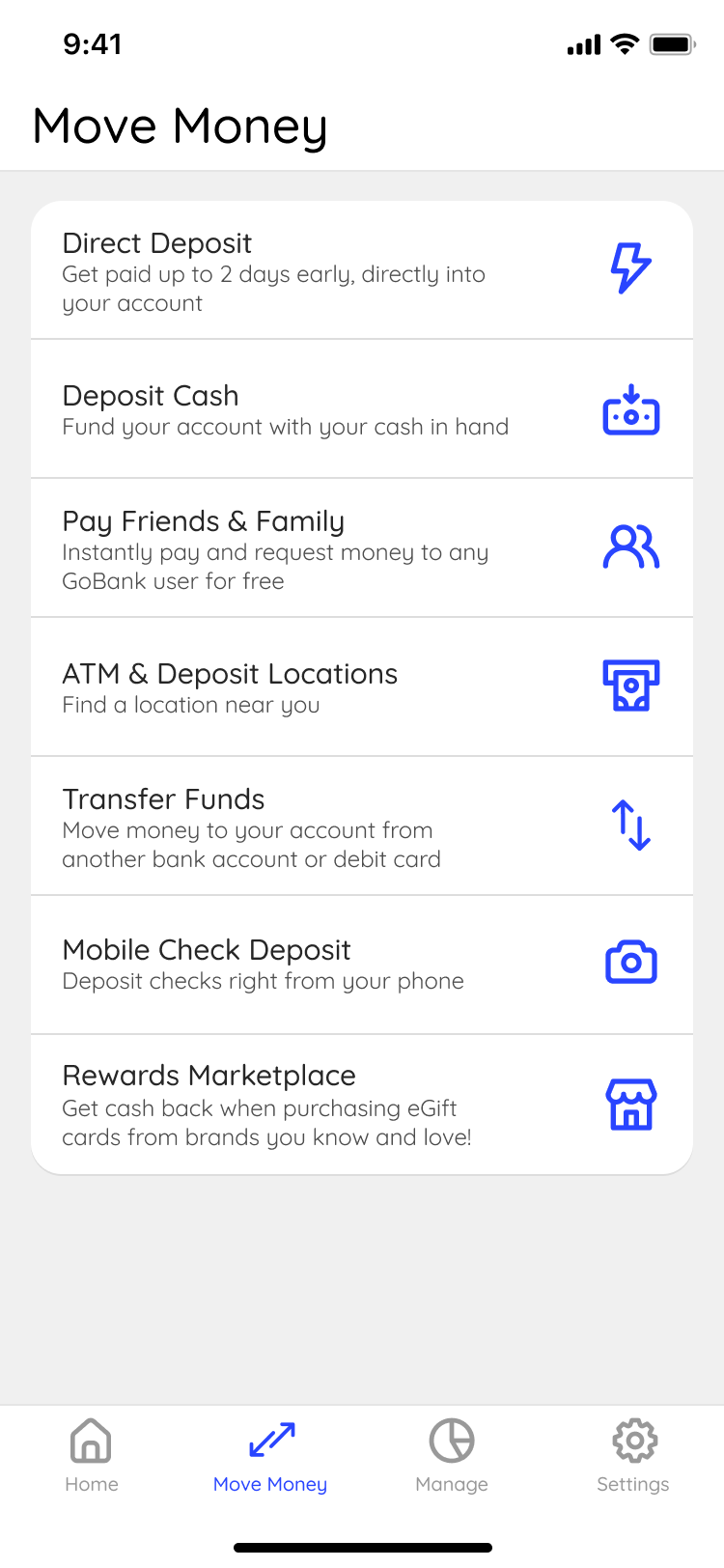 In the spring of 2020 the Eureka project was started, an effort to turn the page on Green Dot's legacy brands and build a B2C banking app for the future. After much brand and market research, that project became GO2bank and the goal was to launch it in early 2021. While some work done on individual money movement flows were re-used, large parts of the app and all of the website had to be designed from scratch in a span of about 5 months. In addition to this, the goal was for this app to be a white label solution, capable of being re-skined under a diferent partner brand.